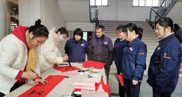 此次活動(dòng),公司邀請(qǐng)了來(lái)自市書(shū)法協(xié)會(huì)的書(shū)法老師們蒞臨現(xiàn)場(chǎng),展示書(shū)法藝術(shù)精髓,弘揚(yáng)中國(guó)特色的傳統(tǒng)民間文化?!按猴L(fēng)浩蕩展鴻圖、虎步奔騰開(kāi)勝景”、“茶緣廣裕業(yè)有孚、新程奮進(jìn)正當(dāng)時(shí)”......老師們妙筆生花,一對(duì)對(duì)喜氣的虎年春聯(lián)、年畫(huà),烘托出濃濃年味;一句句美好的祝福,伴著墨香暖人心扉。上洋家人們趁工作休息間隙紛紛前來(lái)挑選心儀的虎年春聯(lián)、年畫(huà),與老師們合影留念,現(xiàn)場(chǎng)一片溫馨祥和的喜慶氣氛。